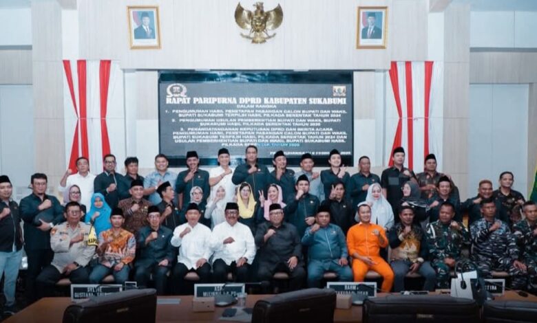 SUKABUMI || Koranprogresif.id – DPRD Kabupaten Sukabumi menggelar rapat paripurna DPRD agenda pengumuman hasil penetapan pasangan calon (paslon) Bupati dan Wakil Bupati Sukabumi terpilih hasil pilkada serentak 2024 dan pengumuman usulan pemberhentian Bupati dan Wakil Bupati hasil pilkada serentak tahun 2020, serta penandatangan berita acara terkait usulan pemberhentian masa jabatan Bupati dan Wakil Bupati masa bakti 2021-2025, paripurna berlangsung di Ruang Rapat DPRD Kabupaten Sukabumi, Palabuhanratu, Kamis malam (6/2/2025).