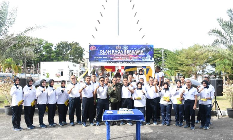Sabang,– Untuk menjaga sinergitas dan kekompakan bersama antar Forum Komunikasi Pimpinan Daerah (Forkompimda) Kota Sabang, Komandan Lanal Sabang Kolonel Laut (P) Sadimin, S.E., M.Tr. Opsla., beserta Prajurit dan unsur Forkopimda melaksanakan olahraga bersama dalam Rangka merayakan HUT Ke-80 TNI AL yang dilaksanakan di Lapangan Markas Komando (Mako) Lanal Sabang, Kamis (18/09/2025).