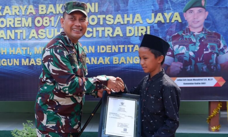 “Kegiatan renovasi ini merupakan wujud nyata karya bakti TNI dengan menggandeng seluruh pihak-pihak terkait untuk sama-sama bekerja mewujudkan tempat tinggal yang lebih layak bagi anak-anak yatim piatu,” kata Danrem 081/DSJ, Kolonel Arm Untoro Hariyanto dalam sambutannya yang dibacakan Dandim 0801/Pacitan, Letkol Arh Imam Musahirul saat meresmikian bangunan baru Panti Asuhan Citra Diri, Selasa (29/4/2025).