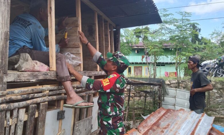 Ringankan Beban Pekerjaan Warga Binaan, Babinsa Koramil Mapurujaya Membantu Pembuatan Kandang Ayam