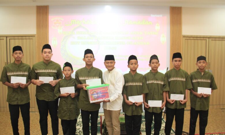 Komandan Rumkital Marinir Cilandak, Kolonel Laut (K) drg. Muh. Arifin, Sp.Ort, M.Tr.Opsla menyerahkan santunan kepada sejumlah anak yatim dalam acara buka puasa bersama civitas hospitalia Rumkital Marinir Cilandak, bertempat di Gedung Serba Guna (GSG) Rumkital Marinir Cilandak, Jum’at (21/3/25).
