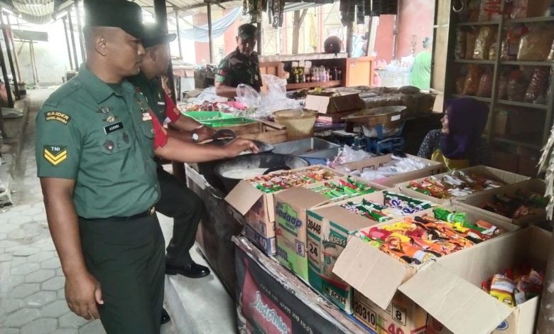KLATEN – Dalam rangka menjaga stabilitas harga dan ketersediaan bahan kebutuhan pokok di wilayah binaan, Babinsa Koramil 09/Prambanan Kodim 0723/Klaten Sertu Asrori bersama dua orang Babinsa lainnya melaksanakan kegiatan monitoring dan pengecekan harga sembako di Pasar Taji, Desa Taji Kecamatan Prambanan Kabupaten Klaten, pada Senin (3/11/2025).