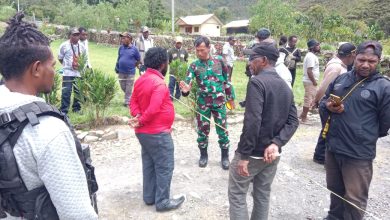 Keerom – Kembali Satgas Yonif 143/TWEJ berkeliling menyambangi warga di pedalaman Papua untuk memberikan bantuan berupa baju dan bibit tanaman untuk warga Dusun Tiarse, Kampung Molof, Distrik Senggi, Kab. Keerom, Papua, Rabu (19/7/2023).
