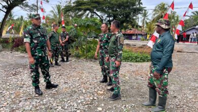 Sambut Bulan Kemerdekaan, Kodim 1710/Mimika Pasang Bendera Merah Putih Di Sepanjang Jalan
