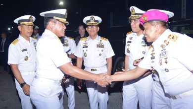 Jakarta – koranprogresif.co.id, Wakil Komandan Korps Marinir (Wadan Kormar) Brigjen TNI (Mar) Suherlan mengikuti Upacara Tabur Bunga di Laut, dalam rangka memperingati Hari Armada ke-78 Tahun 2023 dengan mengusung tema “Koarmada RI Mendukung Kekuatan Laut Nusantara Terus Melaju Bersama untuk Indonesia Maju” di atas Kapal Perang Republik Indonesia, KRI SMR-594 yang berlayar di sekitaran Perairan Jakarta. Kamis (30/11/2023).