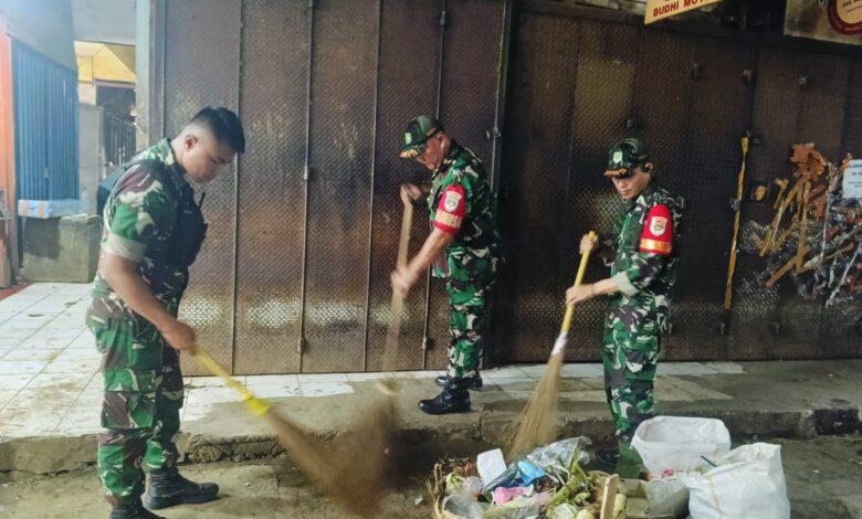 Sambut Hari Juang Kartika, Koramil 05/Kebayoran Baru Kerja Bakti membersikan sampah Pasar