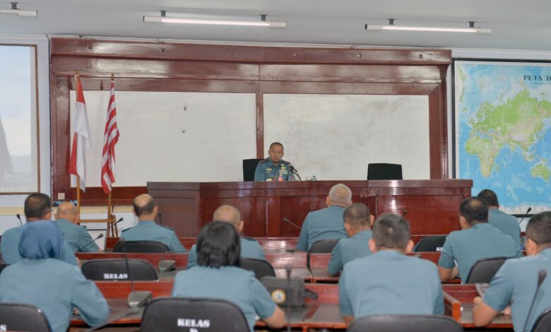 Menindaklunjuti dinamika kurikulum pendidikan yang ada di lingkungan TNI AL, Komandan Sekolah Staf dan Komando Angkatan Laut (Danseskoal) Laksamana Muda TNI Ariantyo Condrowibowo memberikan pengarahan kepada segenap Pejabat Utama (PJU) Seskoal, Kepala Departemen (Kadep) serta Dosen Seskoal yang dilaksanakan di Kelas D Gedung OB Syaaf Seskoal, Cipulir, Kebayoran Lama, Jakarta Selatan, Kamis (3/7/2025).
