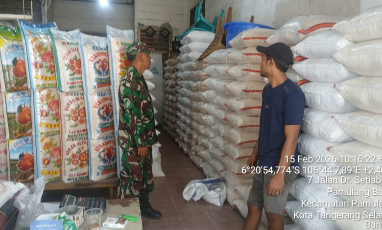 Tangerang – Babinsa Posramil Koramil 08/Pamulang, Kodim 0506/Tgr pergi ke pasar tradisional untuk melakukan pengecekan harga Sembako dan kesedian bahan pokok menjelang bulan suci Ramadhan tahun 2026.