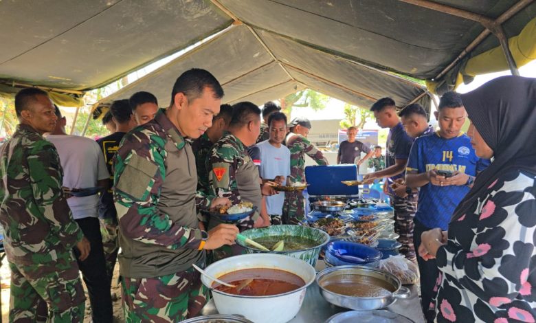 Aceh Tamiang – Personel Satgas Kuala TNI–Jhonlin membaur bersama masyarakat dalam tradisi Meugang menyambut bulan suci Ramadhan 1447 H di Desa Pusung Kapal, Kabupaten Aceh Tamiang, Rabu (18/2/2026). Tradisi ini menjadi wujud rasa syukur dan kebersamaan masyarakat Aceh menjelang Ramadhan.