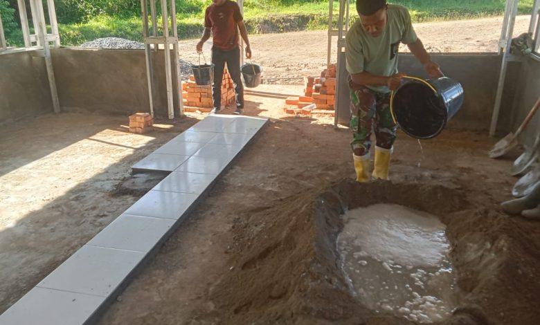 Satgas TMMD 126 Kodim Tambrauw Lanjutkan Pemasangan Keramik pada Pembangunan Gereja Advent