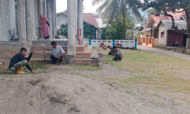 Satgas TMMD ke-124 Kodim 0107/Aceh Selatan Bersama Warga Laksanakan Gotong Royong Pembersihan Masjid