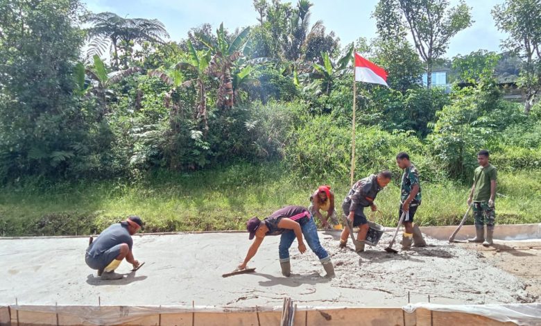 Satgas TMMD ke-126 Semangat Gotong Royong Lanjutkan Pengecoran Jalan di Kampung Babak