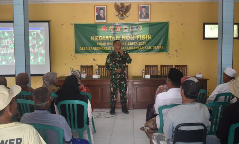 DEMAK || Koranprogresif.id – Dalam mewujudkan Binter TNI AD yang adaptif Satgas TMMD Reguler Ke-123 Kodim 0716/Demak melaksanakan kegiatan non fisik berupa penyuluhan Bela Negara dan Wawasan Kebangsaan kepada masyarakat Desa Bandungrejo, Kecamatan Karanganyar, Kabupaten Demak, Jum’at (28/02/2025)