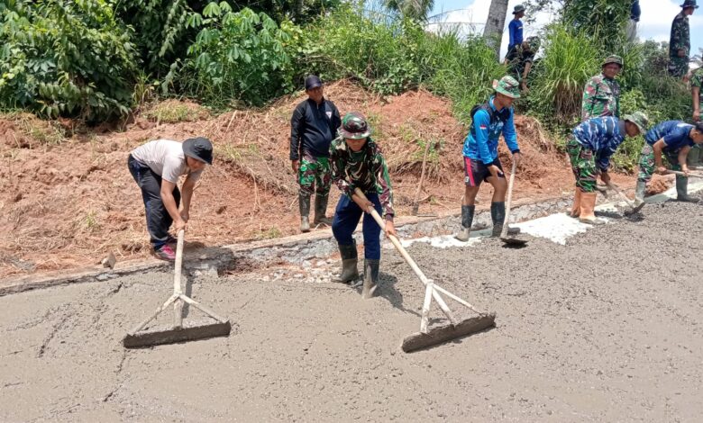 Satgas TMMD Pantang Menyerah, Betonisasi Jalan di Bawah Terik Matahari