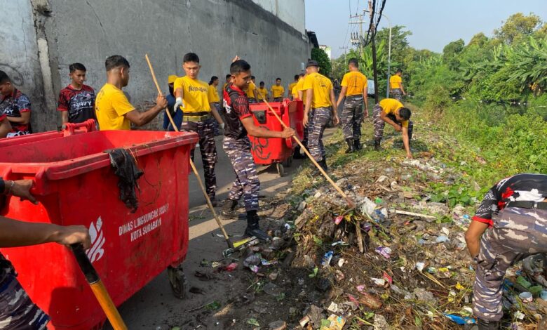 Satkor Koarmada III Bersama Warga Wonosari dan DLH Surabaya Gelar Baksos dan Kerja Bakti di Bantaran Sungai