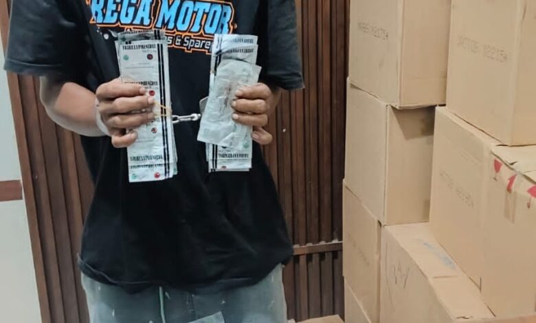 Tersangka berinisial R, pria berusia 33 tahun, warga Dusun 02, Desa Gegesik Kulon, Kecamatan Gegesik, Kabupaten Cirebon, yang berprofesi sebagai wiraswasta. Dari tangan tersangka disita sejumlah barang bukti berupa 1.000 butir pil Trihexyphendyl, 615 butir pil Tramadol, uang tunai hasil penjualan sebesar Rp220.000, satu kardus coklat dibalut plastik hitam, satu unit ponsel merk Vivo warna biru, satu celana pendek warna hitam, dan satu unit sepeda motor Honda Win warna hitam.