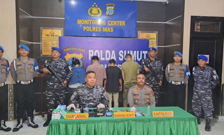 SEDANG TRANSAKSI SABU, TIGA PELAKU DAN SATU BANDAR NARKOBA DI NIAS DITANGKAP TNI AL DAN POLRES NIAS