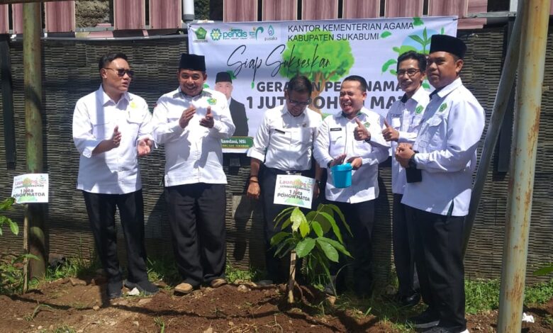 SUKABUMI || Koranprogresif.id – Kementrian Agama Kab. Sukabumi Menginisiasi Gerakan Penanaman Satu Juta Pohon Matoa, pada peringatan Hari Bumi Sedunia 2025 yang secara serentak diikuti oleh ASN Kementerian Agama, para tokoh lintas agama dan masyarakat dari berbagai wilayah di Kab. Sukabumi. “Kami lakukan gerakan ini bersama keluarga besar Kementerian Agama dan para tokoh listas agama intik memberi teladan dalam pelastarian alam,” demikian ungkap H. Agus Santosa, selaku Kasubag TU Kementerian Agama Kab.Sukabumi, Selasa (22-4-2025) yang dipusatkan dihalaman Kemenag Kab. Sukabumi.