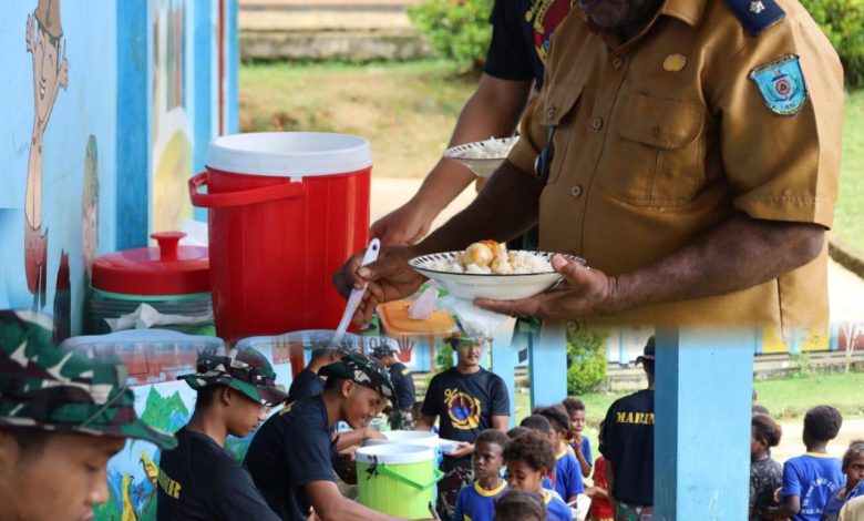 JAKARTA || Koranprogresif.id – Prajurit TNI AL yang tergabung dalam Satuan Tugas Pengamanan Perbatasan (Satgas Pamtas) RI – PNG (Papua Nugini) Mobile Gobang IV Yonif 10 Marinir/SBY menggelar kegiatan makan bersama dengan siswa-siswi serta wali murid SD YPK Emaus, Kampung Susumuk, Kabupaten Maybrat, Papua Barat Daya, Jum’at (18/7).