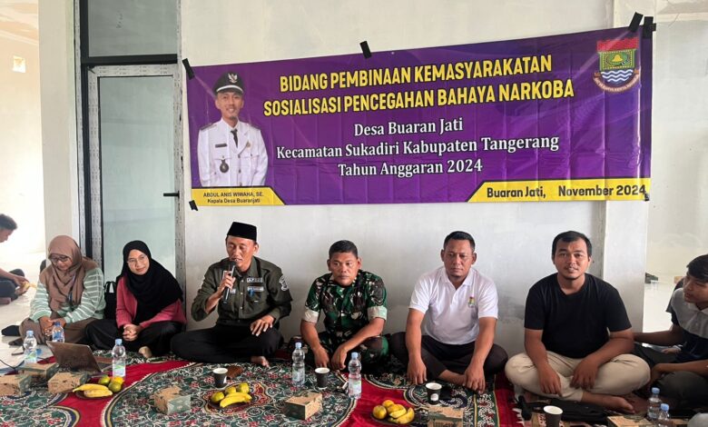 Kegiatan sosialisasi pencegahan peredaran Narkoba di gelar di Kantor Desa Buaran Jati RT 04/06 Kecamatan Sukadiri Kabupaten Tangerang, Sabtu (30/11/2024).