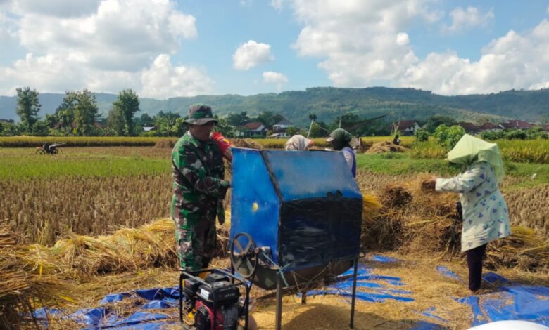 Serka Heri Irawan tampak ikut serta dalam proses panen bersama para petani, bahu-membahu memanen padi yang telah memasuki masa panen raya. Selain membantu secara fisik, Babinsa juga memberikan semangat dan motivasi kepada para petani agar terus berproduksi secara maksimal.