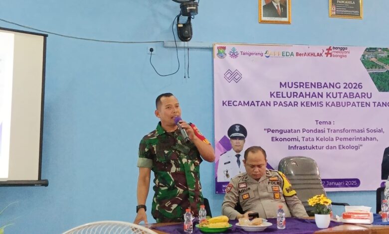 Tigaraksa || Koranprogresif.id, Berkontribusi dalam pembangunan wilayah, Babinsa Koramil 11/Pasar Kemis, Kodim 0510/Trs Serka Sakip mengikuti Musrenbang tingkat Kelurahan, Kegiatan di gelar di Aula Kelurahan Kutabaru Kecamatan Pasar Kemis Kabupaten Tangerang, Jum’at (17/01/2025).