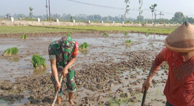 Sertu Abd. Qodir Bantu Petani Desa Tugu, Siapkan Lahan Tanam