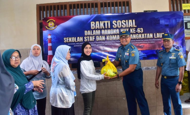 Peringati HUT ke-63 Sekolah Staf dan Komando Angkatan Laut (Seskoal) tahun 2025, Danseskoal Laksamana Muda TNI Ariantyo Condrowibowo diwakili Kepala Pusat Olah Yudha (Kapusoyu) Seskoal Kolonel Laut (P) Bagus Jatmiko, S.H., M.Sc., M.Tr.Opsla. memberikan bantuan sosial kepada masyarakat sekitar komplek Seskoal yang membutuhkan, bertempat di Balai Pertemuan RW 010, Cipulir, Kebayoran Lama, Jakarta Selatan, Rabu (26/11/2025).