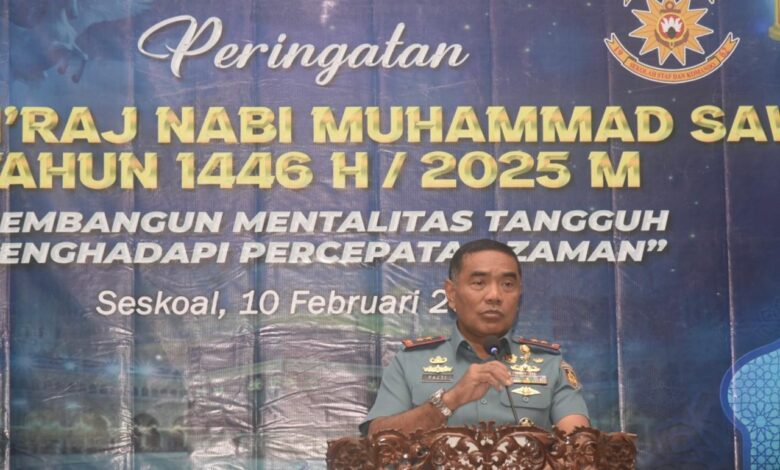 Jakarta || Koranprogresif.id, Komandan Seskoal (Danseskoal) Laksamana Muda TNI Fauzi, S.E., M.M., M.Tr. Opsla., M.Han. menghadiri peringatan Isra Mikraj Nabi Muhammad SAW. tahun 1446 H/ 2025 M. Kegiatan ini dilaksanakan di Masjid Nurul Iman, Seskoal, Cipulir, Kebayoran Lama, Jakarta Selatan. Senin, (10/02/2025).