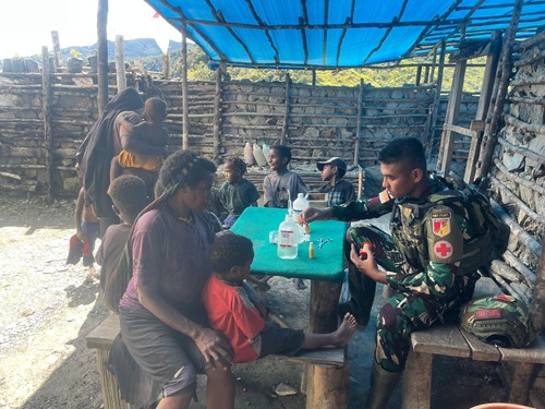 Puncak Jaya – Di Pagi hari yang sejuk dan angin yang berhembus kencang tak disangka masyarakat Tinolok berbodong-bondong dan tentunya dengan adik-adik kecil yang sangat manis berteriak kencang sambil berlari kemudian meminta obat kepada personel Pos Tinolok, dengan sigap personel Kesehatan Pos Tinolok menyambut hangat dan penuh cinta masyarakat yang datang kemudian memeriksa keluhannya, Puncak Jaya, Kamis (05/06/2025).