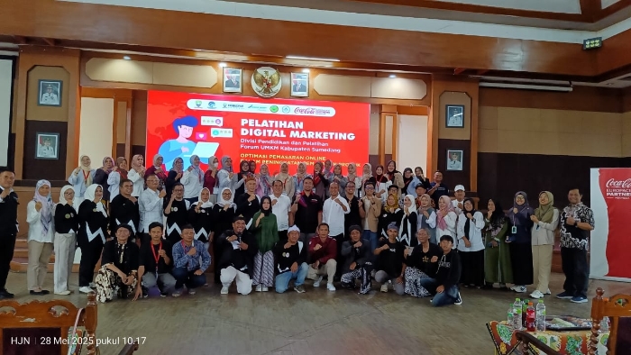 Perdagangan Kab. Sumedang Drs. Agus Kori Hidayat, M. Si menyampaikan apresiasinya kepada CCEP Indonesia atas dukungan berkelanjutan perusahaan terhadap program Pemerintahan Kabupaten Sumedang dalam meningkatkan kapasitas pelaku UMKM melalui pelatihan Digital Marketing.