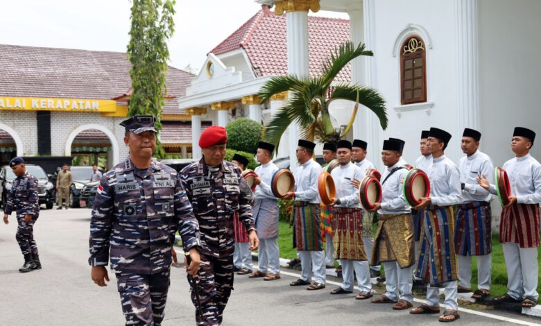 Bengkalis || Koranprogresif.id, Hangat dan penuh penghormatan, Wakil Bupati Bengkalis Dr. H. Bagus Santoso bersama Forkopimda Kabupaten Bengkalis sambut kedatangan Danlanal Dumai Kolonel Laut (P) Abdul Haris S.E., M.M.D.S., beserta rombongan. Dengan tradisi khas tabuhan kompang serta pemasangan tanjak, Danlanal Dumai disambut di Wisma Daerah Sri Mahkota Bengkalis, Senin (19/5/2025).