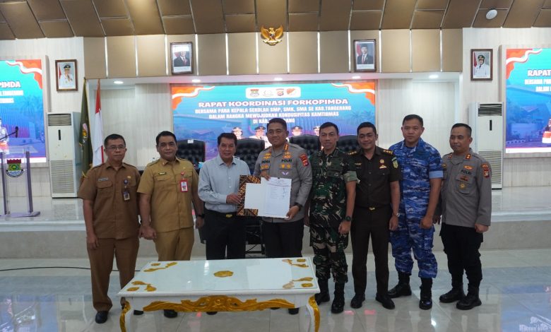 Rapat yang dipimpin Kapolresta Tangerang Kombes Pol Andi M. Indra Waspada ini dihadiri sejumlah pejabat strategis, antara lain Kapolres Tangsel Kombes Pol Viktor Daniel Henri Inkirawang, Dandim 0510/Tigaraksa Letkol Inf Yudho Setyono, AKBP Supriyadi mewakili Polres Metro Tangerang Kota, serta jajaran kepala OPD Pemkab Tangerang. Perwakilan sekolah SMP, SMA, dan SMK se-Kabupaten Tangerang juga hadir untuk memperkuat komitmen bersama menjaga ketertiban.