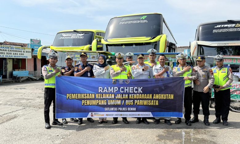 DEMAK || Koranprogresif.id – Satuan Lalulintas (Satlantas) Polres Demak bersama Dinas Perhubungan dan Jasa Raharja Kabupaten Demak menggelar ramp check atau pemeriksaan kelayakan jalan kendaraan transportasi umum di Terminal Bintoro Demak dan area parkir wisata religi Makam Sunan Kalijaga, Selasa (25/11/2025).