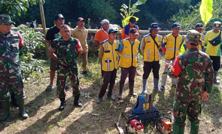 “Rumpun bambu yang hanyut saat hujan deras kemarin harus segera dibersihkan. Kalau dibiarkan menumpuk, justru bisa jadi penyebab banjir,” ungkap Kapten Kav Pujiono saat ditemui.