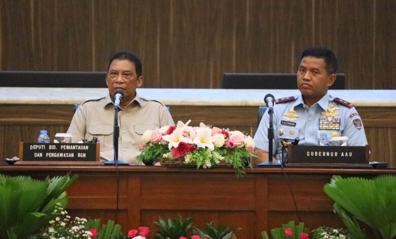 Kedatangan Deputi BGN disambut langsung oleh Gubernur AAU Marsekal Muda TNI Dr. Ir. Purwoko Aji Prabowo, M.M., MDS., di Ruang VIP Gedung Sabang Merauke, sebagai bagian dari dukungan penuh TNI AU terhadap suksesnya program strategis nasional di bidang pembangunan gizi dan kesehatan masyarakat.