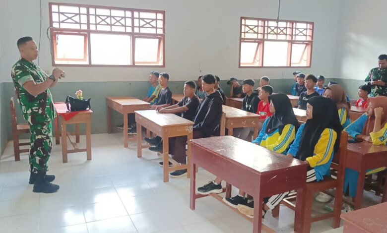 PONOROGO || Koranprogresif.id – Para siswa-siswi SMP PGRI Selur hari ini menerima materi Wawasan Kebangsaan (Wasbang) dari anggota Satgas TNI Manunggal Membangun Desa (TMMD) ke-121 tahun 2024 Kodim 0802/Ponorogo di Desa Selur, Kecamatan Ngrayun, Kabupaten Ponorogo, Jum’at (09/08/2024).