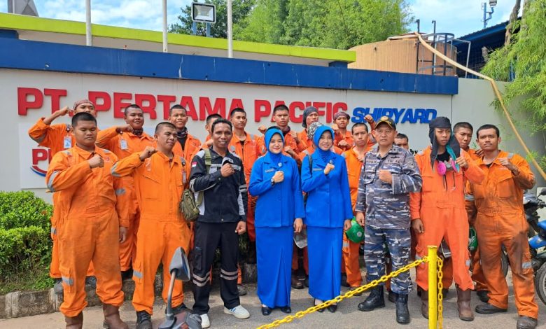 Bintan,- Pengurus Yayasan Hang Tuah Lanal Bintan yang dipimpin oleh Pengawas Yayasan Hang Tuah Perwakilan Bintan Ny. Erni Eko Agus Susanto mengunjungi Siswa Kelas Industri Taruna Tingka 3 SMK Perkapalan Yayasan Hang Tuah Tanjung Uban Lanal Bintan yang sedang melaksanakan Kelas Industri di PT. Pertama Pacific Shipyard Sei Lekop Sagulung Batam, Senin (22/09/2025).