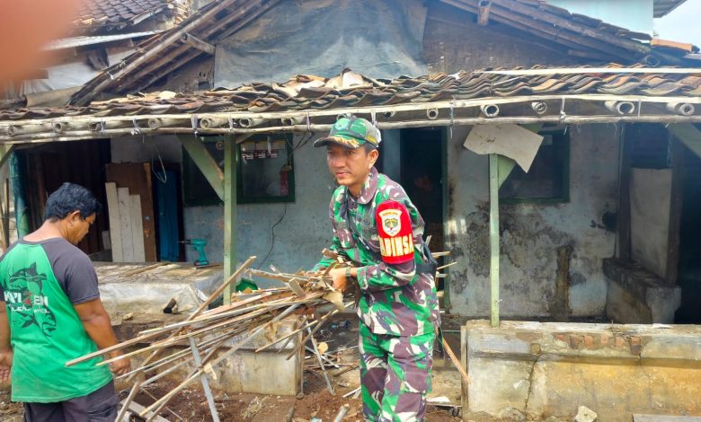 Sosial Kemasyarakatan, Babinsa Bersama Kades Bedah Rumah Warga Tidak Layak Huni