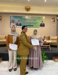 Usai memberikan sambutan dan membuka acara secara resmi, Kepala Dinas Kesehatan menyerahkan Piagam Penghargaan Kepada Apotek Monalisa Sebagai Role Model Fasyankes Apotek Tingkat Kabupaten Kapuas dan Toko Obat Rahim Sebagai Role Model Fasyankes Toko Obat Tingkat Kabupaten Kapuas. (Tt Progresif).