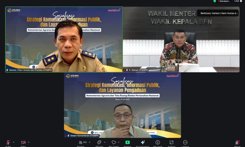 JAKARTA || Koranprogresif.id – Kementerian Agraria dan Tata Ruang/Badan Pertanahan Nasional (ATR/BPN) terus berupaya menyediakan serta menyebarkan informasi terkait pertanahan dan tata ruang kepada masyarakat. Hal ini seperti yang dikatakan oleh Kepala Biro Hubungan Masyarakat dan Protokol, Harison Mocodompis dalam kegiatan Sosialisasi Strategi Komunikasi, Informasi Publik, dan Layanan Pengaduan, pada Senin (21/07/2025).
