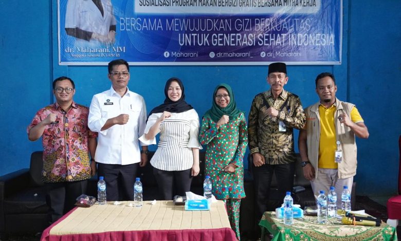 Acara sosialisasi program Makan Bergizi Gratis (MBG) dihadiri oleh anggota Komisi IX DPR RI Maharani, Tenaga Ahli Robial Azimi, Analis Kebijakan Ahli Madya, Direktorat Penyaluran Wilayah III BGN Kolonel Infantri Erin Andriyanto, Tenaga Ahli Direktorat Promosi dan Edukasi Gizi BGN Anyelir Puspa Kemala (zoom), dan Ahli Gizi Puskesmas Sedinginan Titin Sundari.