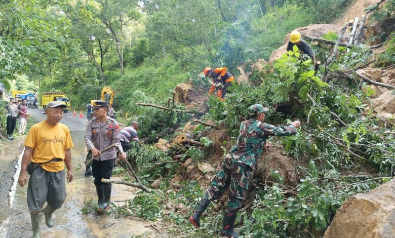 Tanah Longsor Menutup Jalan, Dandim Ponorogo Langsung Terjun ke Lokasi