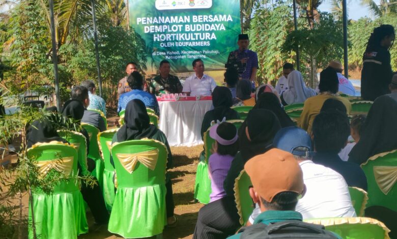 Tigaraksa || Koranprogresif.id, Plh Danramil 10/Sepatan, Kapten Inf Triyadi, bersama Muspika hadiri pelaksanaan penanaman pohon cabe dalam program demplot budidaya hortikultura di lahan Kelompok Wanita Tani (KWT) Kampung Kohod, RT 01 RW 01, Desa Kohod, Kecamatan Pakuhaji, Kabupaten Tangerang. Program ini dilaksanakan dengan kerja sama antara Edufarmers dan pihak PT ASG, Jumat (20/12/2024).