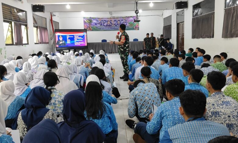 Kota Bekasi — Dalam rangka Masa Pengenalan Lingkungan Sekolah (MPLS) tahun ajaran baru 2025/2026 secara serentak di seluruh sekolah se-Jawa Barat, Danramil 01/Kranji Kodim 0507/Bekasi Mayor Inf Taufik Ismail memberikan pembekalan kepada para siswa baru SMAN 8 Kota Bekasi pada Selasa, 15 Juli 2025, pukul 07.00 WIB hingga selesai, bertempat di Jl. Irigasi No. 1, Kelurahan Pekayon Jaya, Kecamatan Bekasi Selatan, Kota Bekasi.
