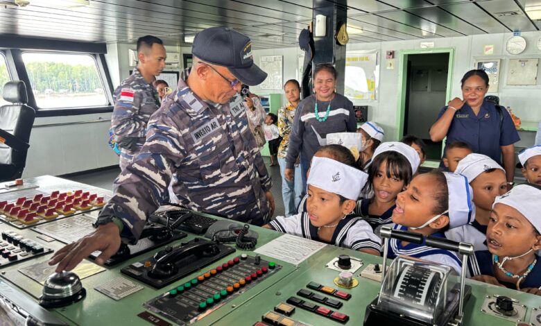 Sebanyak 19 murid TK yang didampingi oleh para guru, pendamping Lanal Timika serta orang tua, disambut langsung oleh prajurit KRI Teluk Calang-524 yang tengah bersandar di pelabuhan setempat. Anak-anak tampak antusias melihat langsung kapal perang milik TNI Angkatan Laut dari dekat bagi mereka, ini bukan sekadar kunjungan, tapi juga petualangan yang membangkitkan rasa ingin tahu dan semangat cinta tanah air.