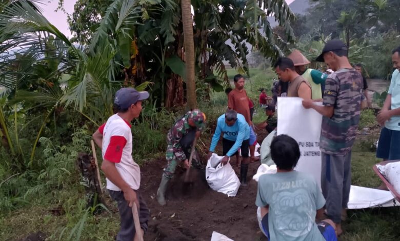 Dalam waktu yang singkat, Sertu Heru Puji Susanto, Babinsa Koramil 09/Prambanan Kodim 0723/Klaten, langsung bergerak cepat bersama Bhabinkamtibmas, perangkat desa dan masyarakat setempat untuk melakukan perbaikan tanggul yang jebol.