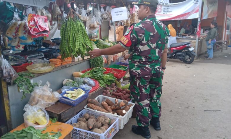Di sebutkan Babinsa Serma Sunarsa untuk mengetahui situasi dan kondisi keamanan wilayah serta memantau stabilitas harga sembako, dirinya langsung turun berinteraksi dalam rangka mendukung program pemerintah terkait harga harga sembako.