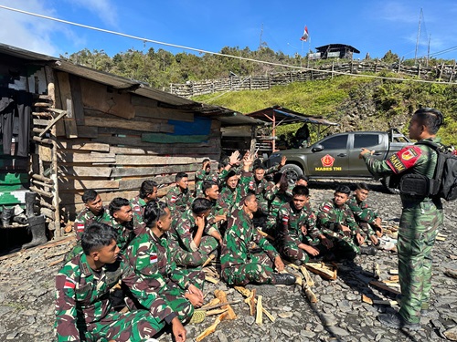 Puncak Jaya – Perwira Hukum Satgas Pamtas Kewilayahan Yonif 715/Motuliato Letda Chk Dicky Stevan Harahap, S.H. utusan terbaik dari Kumdam XIII/Mdk yang bertugas untuk memayungi hukum pergerakan Satgas Pamtas Kewilayahan Yonif 715/Motuliato memberikan penyuluhan hukum tentang Rules of Engagement (ROE) ke tiap-tiap Pos Satgas Pamtas Kewilayahan Yonif 715/Motuliato dalam rangka mengingatkan dan menekankan kembali aturan-aturan yang ada di daerah operasi, juga cara bertindak dan mengambil keputusan yang sesuai dengan aturan Hukum yang berlaku, guna mensukseskan Satgas yang telah berjalan kurang lebih enam bulan di Puncak Jaya Papua, Senin (13/01/2025).