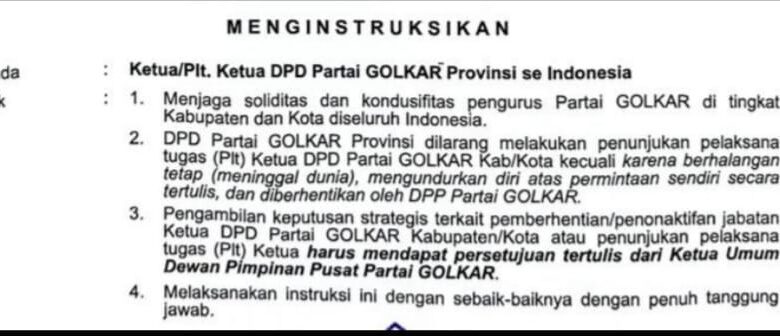“Kami menerima dan tidak mempermasalahkan Keputusan Golkar Jabar selama sesuai mekanisme dan aturan Partai, akan tetapi sampai saat ini mereka tidak bisa menunjukan persetujuan tertulis dari Letum, mereka malah terkesan mengabaikan Instruksi Ketua Umum dan terus berdalih Keputusan yang di buat atas dasar Keputusan Dewan Etik yang merupakan bagian dari DPP GOLKAR, padahal dalam surat Instruksi klausul 3 ditegaskan harus mendapat persetujuan Ketua Umum DPP Golkar, bukan dewan etik,” tandasnya.